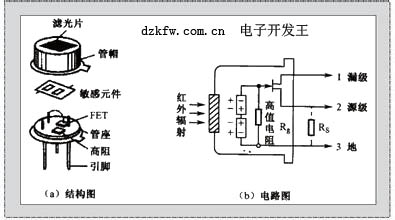 由于熱釋電傳感器內(nèi)部都帶有用于阻抗變換的場效應(yīng)管,故這種傳感器在使用時一般都要接入合適的直流電壓才能工作。另外,這種傳感器輸出的電信號非常微弱,一般還要經(jīng)運(yùn)算放大器或?qū)S玫臒後岆娂t外信號處理IC——BISS0001放大后才能控制負(fù)載工作。