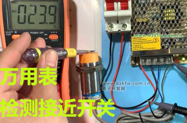我在平時檢測接近開關時的做法是先給接近開關通上24V直流電,用所要檢測的物體靠近和遠離接近開關,然后再用萬用表的電壓檔測量接近開關信號輸出端,如果是指針萬用表,看它的指針是不是有偏轉;如果是數字萬用表看看有沒有高低電壓的轉換,如果有說明接近開關是好的,如果萬用表顯示的電壓數值很穩定,就說明接近開關已經損壞不能用了,顯示效果如下圖所示。
