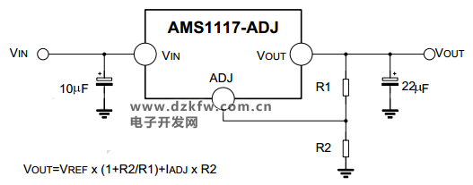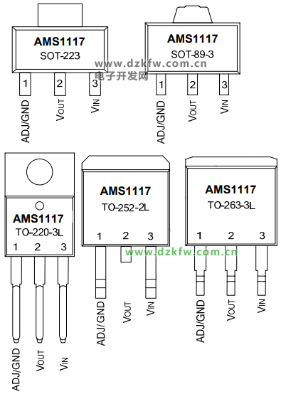 AMS1117有固定和可調兩個版本可用,輸出電壓可以是:1.2V,1.5V,1.8V,2.5V,2.85V, 3.0V,3.3V,和5.0V。片內過熱切斷電路提供了過載和過熱保護,以防環境溫度造成過高的結溫。