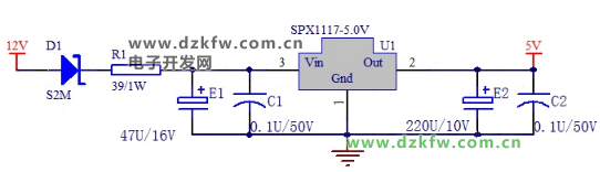 AMS1117典型應用電路(二):AMS1117-5穩壓電路圖