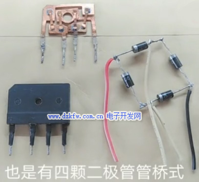 全橋是由4只整流二極管按橋式全波整流電路的形式連接并封裝為一體構成的,圖是其外形。
