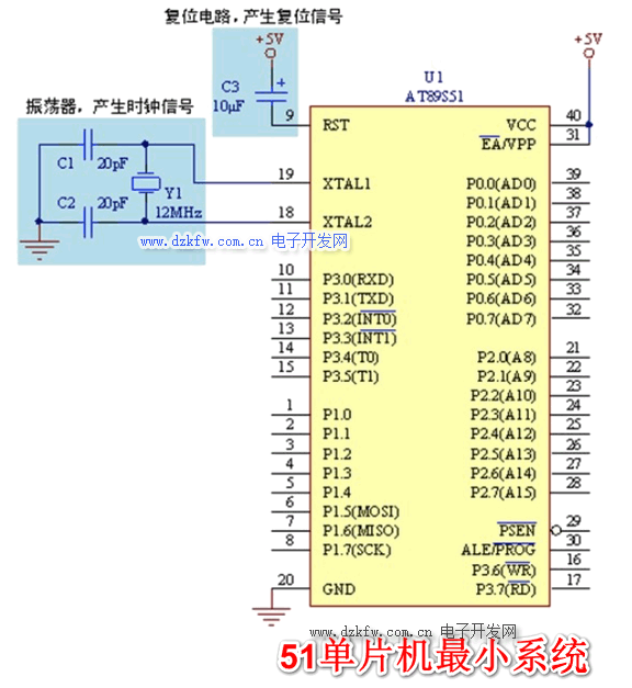 了解晶振之前,我們先來看一下我們最為熟悉的51單片機,我們都知道51單片機最小系統包括供電電源、復位電路以及晶振系統。