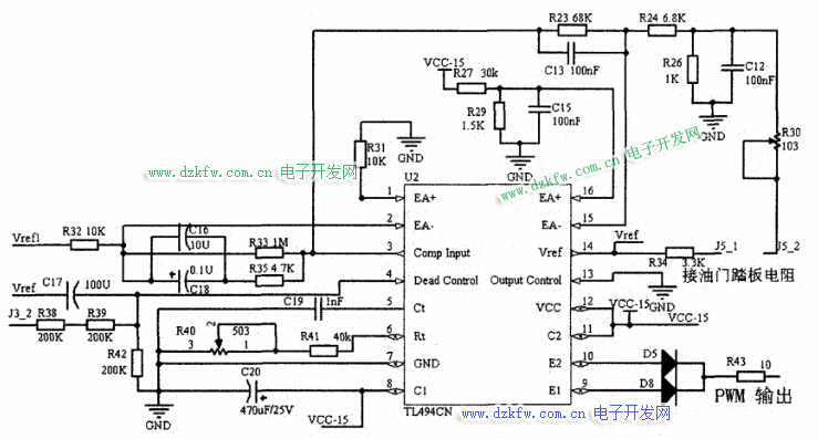 用TL494實現的單回路控制器的電路原理圖如下圖所示。