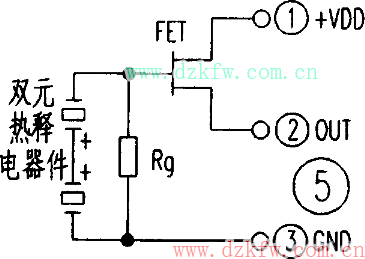 2.兩個單元器件反向連接。因此,同時輸入的紅外線會相互抵消,沒有輸出。由此增加了對外部雜散光、環境溫度變化以及外部震動影響的穩定性(見圖5)。