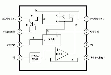 *工作振蕩頻率從100HZ到100KHZ2.MC34063引腳圖及原理框圖