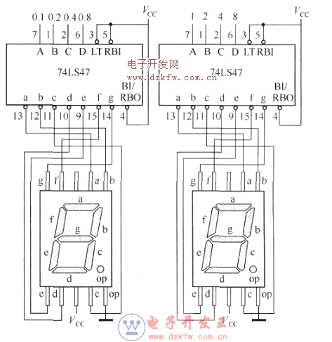 對于數控電壓源,也可以在數字控制的輸出端(即74LS192的輸出端)接七段LED驅動器,間接獲得輸出電壓顯示。如果數控電壓源處在正常狀態,則顯示值將是正確的;如果數控電壓源處在非正常狀態,如電流保護或者過熱保護狀態,則數值顯示將是錯誤的。