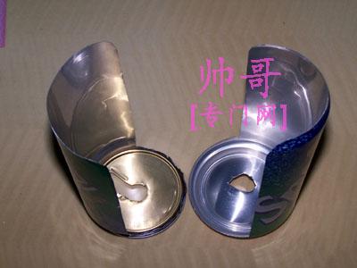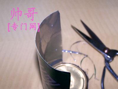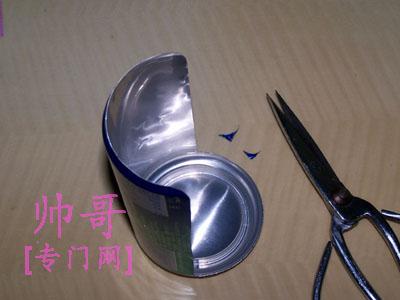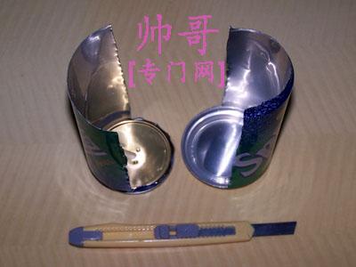 首先把易拉罐清洗干凈,把里面的水倒掉。然后用美工刀沿著易拉罐接縫的地方慢慢切開,如圖:
