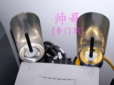 將貼好的半個罐子套到原來的AP天線上試一下松緊程度,大約以能夠套進(jìn)天線而且保持一定的固定能力為準(zhǔn)。如果太松的話就再貼一些膠帶上去。再試一下旋轉(zhuǎn)這半個罐子,要做到能夠旋轉(zhuǎn)自如。象下面相片中就是合適的松緊程度:(左邊的圖是原來的AP樣子)