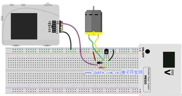 功率分析:本電路的功率分析主要有三部分:馬達功率,三極管功率和電源的功率。根據瓦特定律,功率等于該器件的壓降與電流的乘積。馬達的功率越大則對應更高的轉速,而如果希望改變馬達的功率,只需要調節PWM的占空比即可輕松實現。另外需要注意的是,三極管如果沒有做散熱處理的話,表面溫度會很高,請避免直接觸碰。