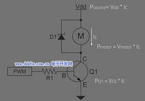 圖1是一個非常基本的三極管直流馬達驅動電路。由于馬達的功率級別在電子電路中是較高的,而PWM信號本身不具備帶載能力,因此無法直接驅動馬達。通常我們可以搭建一個三極管驅動電路實現用小信號控制來大功率器件。