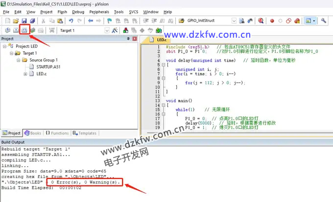 P1_0 = 0; // 點(diǎn)亮P1.0口的LED燈