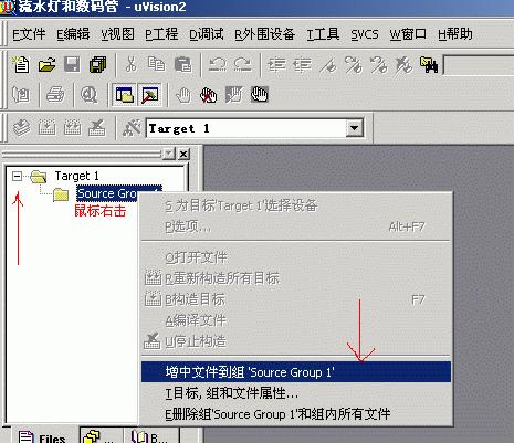 第4步,打開這個(gè)工程目錄,用鼠標(biāo)“右鍵”點(diǎn)擊它內(nèi)部的下屬組目錄,選擇向組里面添加文件選項(xiàng)
