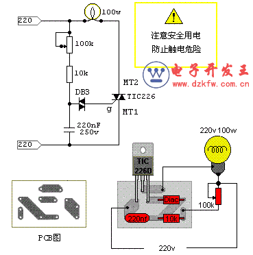 該TIC226可控硅調(diào)光電路使用一塊小散熱片即可,可以對100W的白熾燈進(jìn)行調(diào)光。
