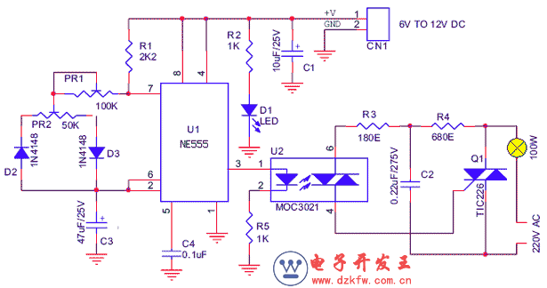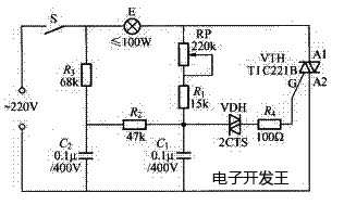 NE555與TIC226可控硅組成的調(diào)光電路