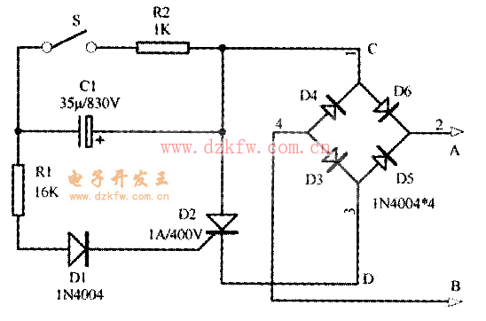 元件選擇:可控硅選用工作電流為1A、耐壓為400V的即可;D1、D3~D6可選用lN4004的整流二極管。C1選用耐壓為630V、容量為35μF的電解電容。