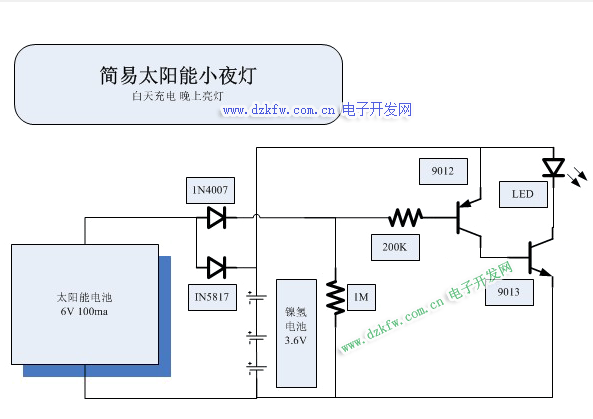 一個(gè)簡(jiǎn)易的太陽能小夜燈電路