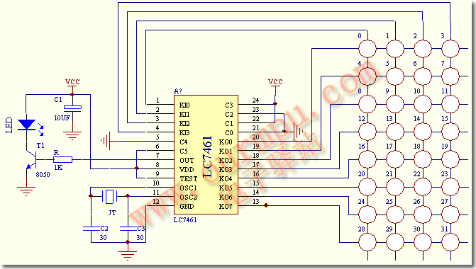 圖9:32鍵豪華型紅外遙控器原理圖 |