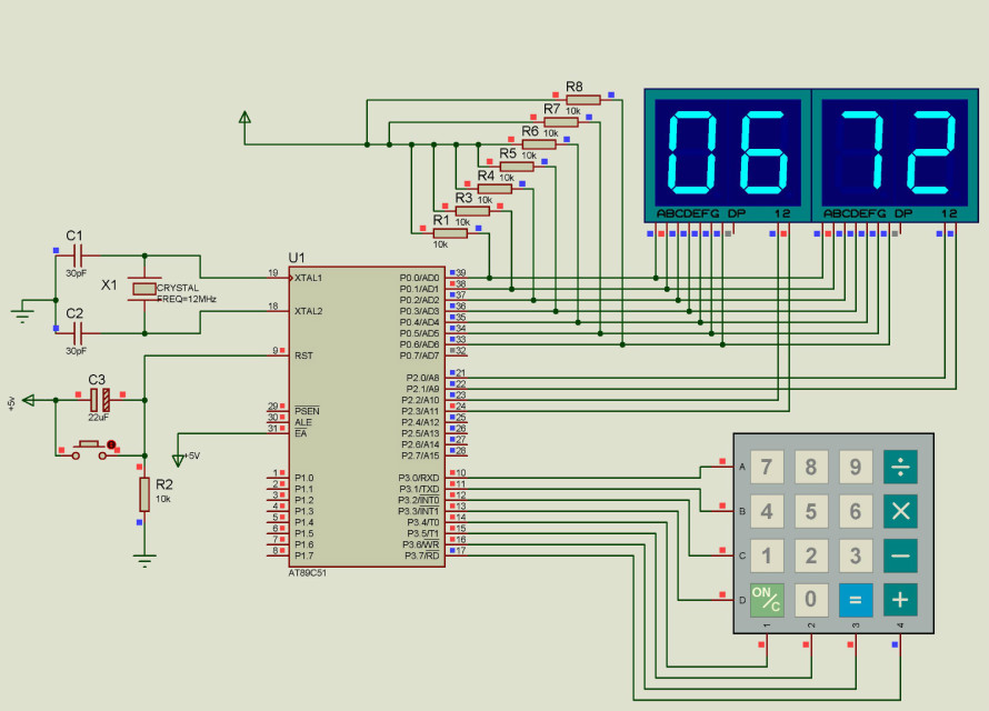 Keyport=0xef; //賦給鍵盤端口特定的值,以實現后面的檢測