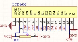 該模塊采用LCD1602液晶屏將電子時鐘工作的實時狀態(tài)顯示在屏幕上,結構簡單,顯示清晰。其中GND接地,VCC接VCC,LCD偏壓輸入引腳V0通過接一個電位器來調節(jié)顯示屏的背光度,數據/命令選擇端RS、讀/寫控制信號端RW、LCD使能端分別由單片機引腳P2.6、P2.5、P2.7進行控制。數據傳輸端D0-D7則用單片機的P0口進行控制。如圖是LCD1602詳細的電路引腳連線圖。