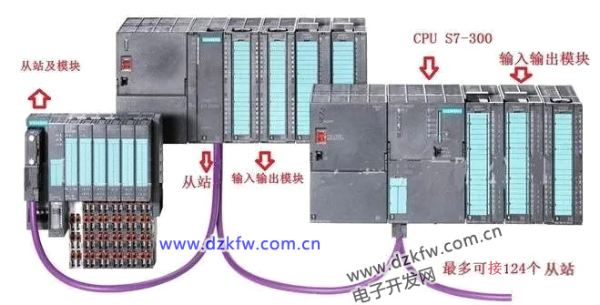 S7-300通過通訊處理器,或通過集成在CPU上的 PROFIBUS-DP接口連接到PROFIBUS-DP網絡上。
