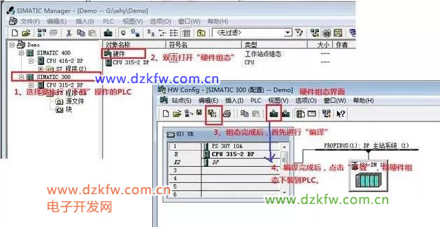 將工程師站的程序下載到PLC中去執行。分為硬件的編譯和下載以及程序的下載兩部分。