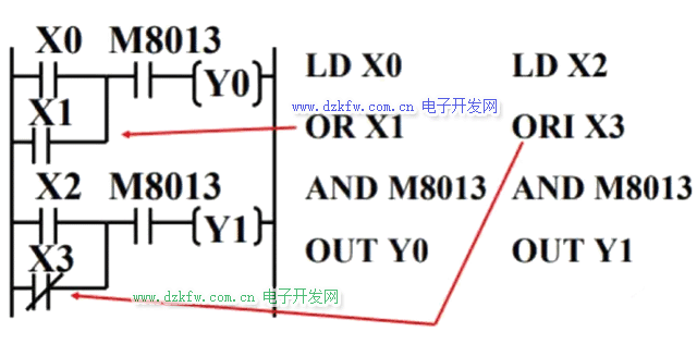 ORI:或非指令。用于單個(gè)常閉接點(diǎn)的并聯(lián)。