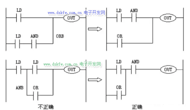 有串聯(lián)電路并聯(lián)時(shí),應(yīng)將接點(diǎn)最多的那個(gè)串聯(lián)回路放在梯形圖最上面。