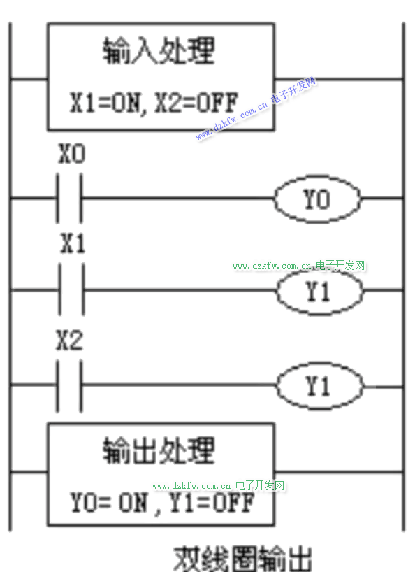 如果在同一程序中同一元件的線圈使用兩次或多次,則稱為雙線圈輸出。這時(shí)前面的輸出無效,只有最后一次才有效,一般不應(yīng)出現(xiàn)雙線圈輸出。