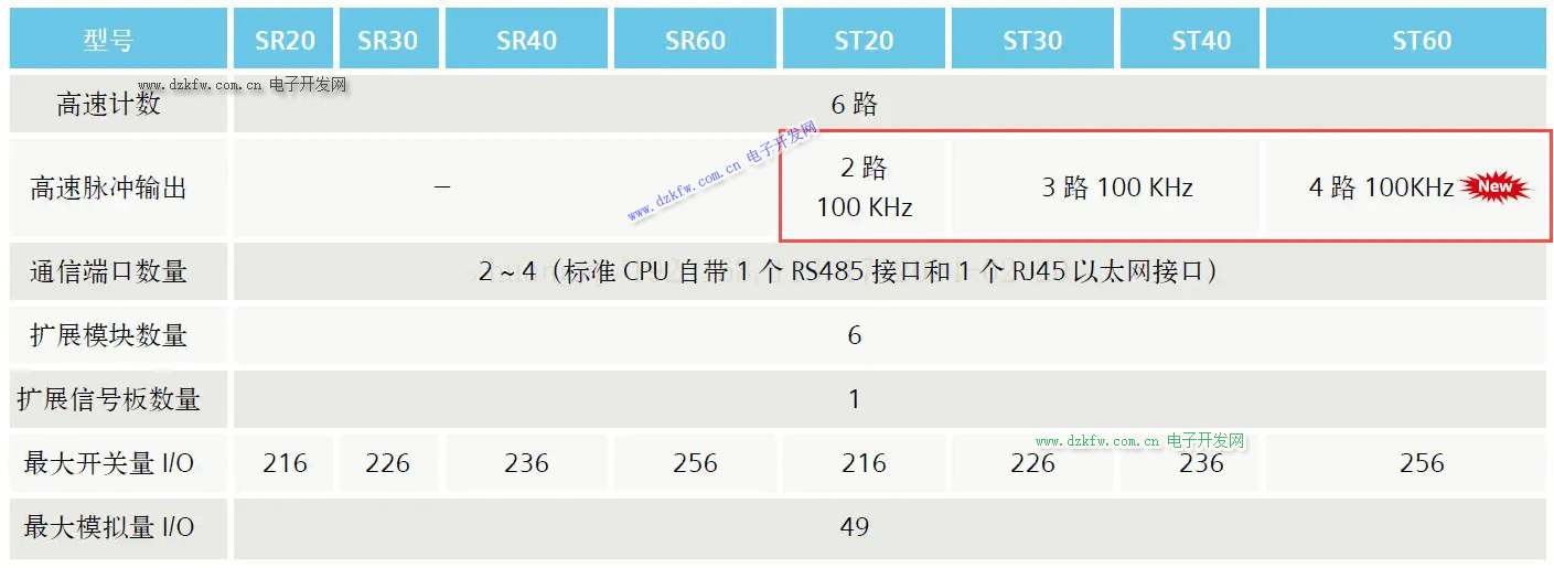 SR/ST 標準型 CPU 可擴展 6 個擴展模塊和 1 個信號板;