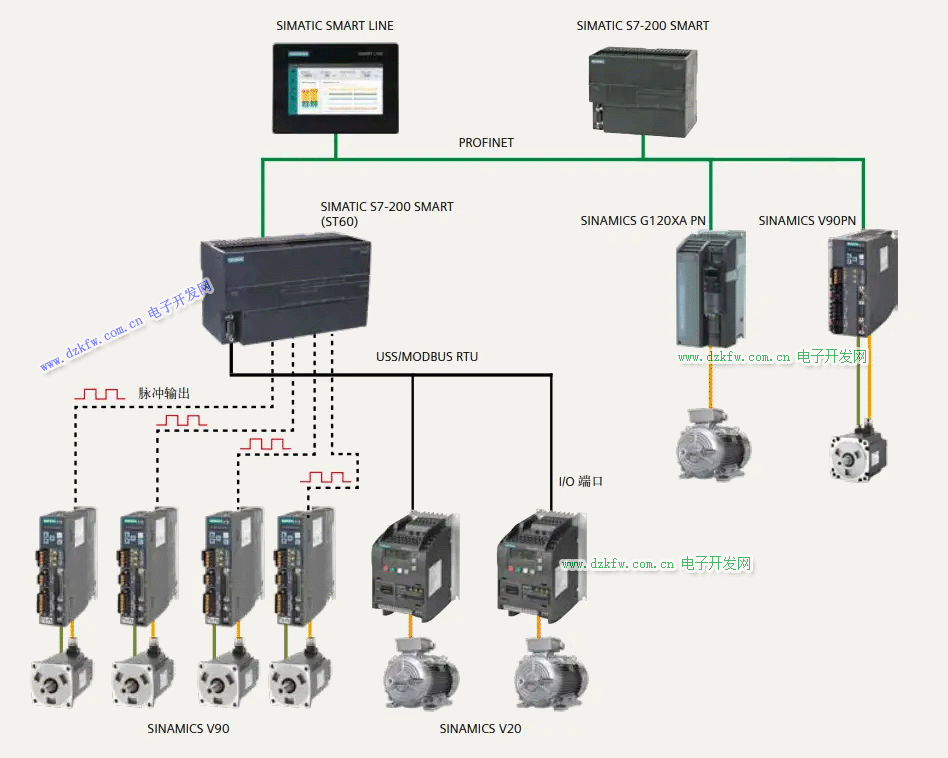 · 支持 PROFINET、TCP、Modbus TCP、UDP、Modbus RTU、USS、PROFIBUS-DP 等通信