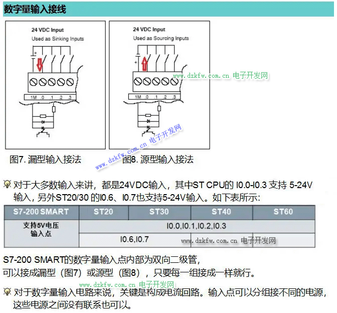 2.1 數字量輸入信號接線( 漏型和源型 )