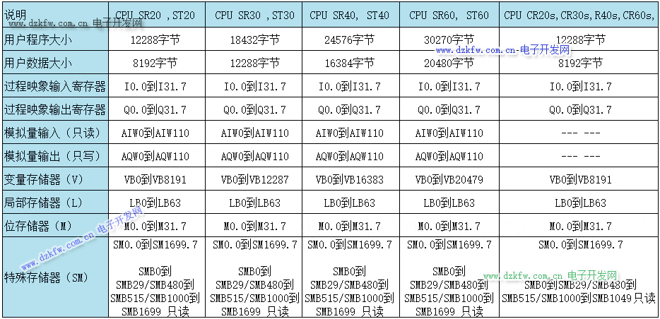 - SM:特殊存儲器,提供了在 CPU 和用戶程序之間傳遞信息的一種方法。 可以使用這些位來選擇和控制 CPU 的某些特殊功能, 可以按位、字節、字或雙字訪問 SM 位
