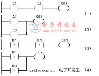 撥動輸入開關I0.1、I0.3,觀察輸出指示燈.Q0.1、Q0.2、Q0.3、Q0.4是否符合與、或、非邏輯的正確結果。