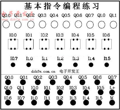 上一排Q0.0~Q1.1是LED指示燈,接繼電器輸出用以模擬輸出負載的通與斷。