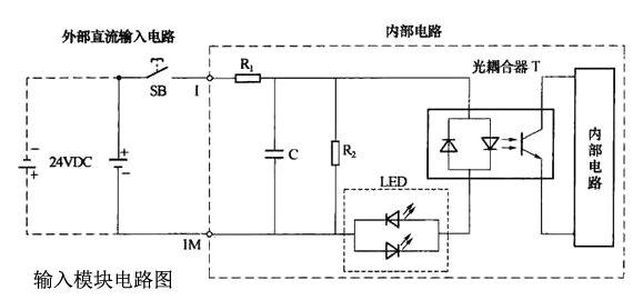 上圖是S7-200的直流輸入模塊內(nèi)部電路和外部接線圖。圖中只畫出了一個(gè)回路。