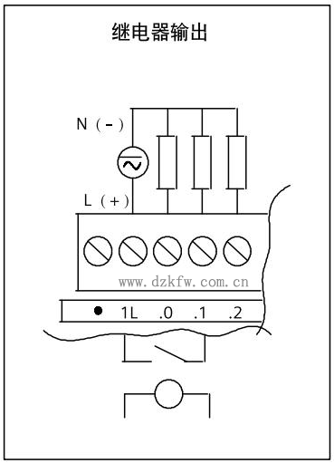 繼電器輸出外圍接線如下圖所示: