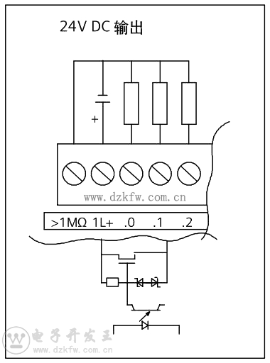 晶體管輸出外圍接線如下圖所示: