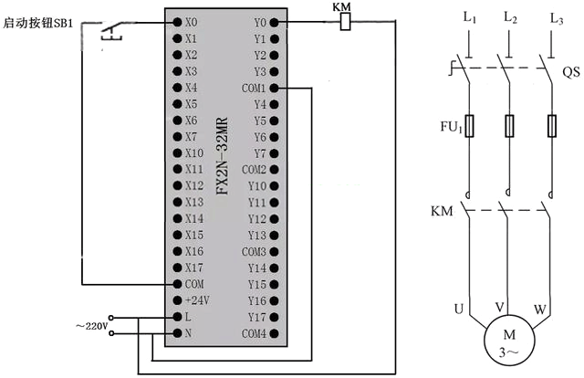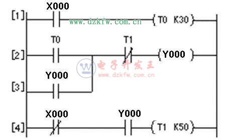 延時起動定時運行控制的plc線路與梯形圖它可以實現的功能是:按下起動按鈕3秒鐘后,電動機起動運行,運行5秒鐘后自動停止。PLC線路與梯形圖說明如下: