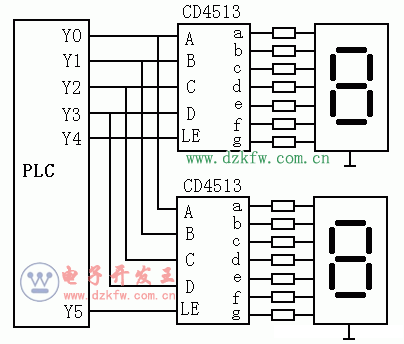 PLC可直接用開關量輸出與七段LED顯示器的連接,但如果PLC控制的是多位LED七段顯示器,所需的輸出點是很多的。