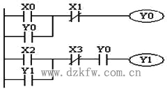 如圖所示。Y0的常開觸點串在Y1的控制回路中,Y1的接通是以Y0的接通為條件。這樣,只有Y0接通才允許Y1接通。Y0關斷后Y1也被關斷停止,而且Y0接通條件下,Y1可以自行接通和停止。X0、X2為起動按鈕,X1、X3為停止按鈕。