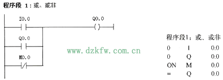 或、或非及輸出指令示例如圖2所示,當常開觸點I0.0、常開觸點Q0.0和常閉觸點M0.0有一個接通時,輸出線圈Q0.0得電(Q0.0=1),I0.0、Q0.0和M0.0是并聯關系。