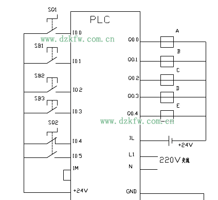 PLC外部接線圖的輸入輸出設備、負載電源的類型等設計就結合系統的控制要求來設定。其控制接線圖如下圖所示: