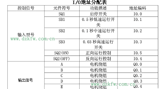 根據PLC外部接線圖可以寫出各電氣元件符號、功能說明表及I/O地址分配表如下: