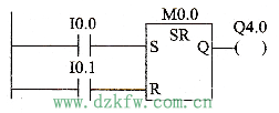 如果在輸入端I0.0的信號狀態為“1”,而輸入端I0.1的信號狀態為“0”,則存儲器位M0.0被置位以及輸出Q4.0=“1”。反之如果輸入I0.0的信號狀態為“0”,而I0.1的信號狀態為“1”,則存儲器位M0.0被復位以及輸出Q4.0=“0”。