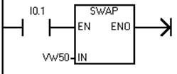 功能:使能輸入EN有效時,將輸入字IN的高字節與低字節交換,結果仍放在IN中 IN:VW, IW, QW, MW, SW, SMW, T, C, LW, AC。數據類型:字 |