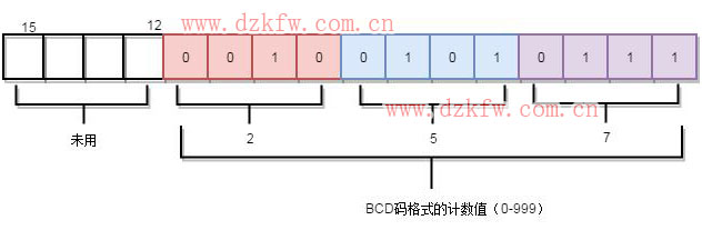 S7的系列CPU為計數器保留了一片存儲區域。一個計數器包括一個16位的字和一個二進制的位。計數器的字用來存儲當前的計數值,而計數器的觸點狀態反映在它的位上。如圖1所示,為計數器的字。