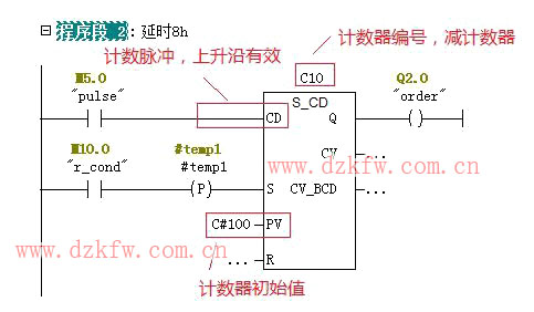實現上述控制要求的方法有多種,這里,介紹一種"利用計數器擴展定時時長"的方法,并簡要引出S7中計數器的概念。
