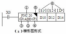 ( 2 )助記符:功能指令的助記符是該指令的英文縮寫(xiě)。如加法指令“ ADDITION ”簡(jiǎn)寫(xiě)為 ADD , 如圖(a) 中的 ②所示。
