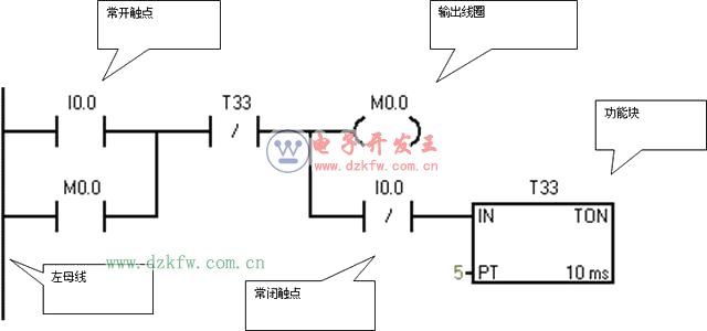功能塊代表一些較復雜的功能。如定時器、計數器或數據傳輸指令等。當“能流”通過功能塊時,執行功能塊的功能。