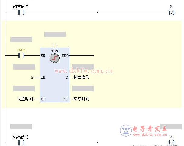 先用觸發(fā)信號置位一個中間變量A,然后利用變量A 去觸發(fā)定時器,等定時器定時完成后,復(fù)位中間變量A。